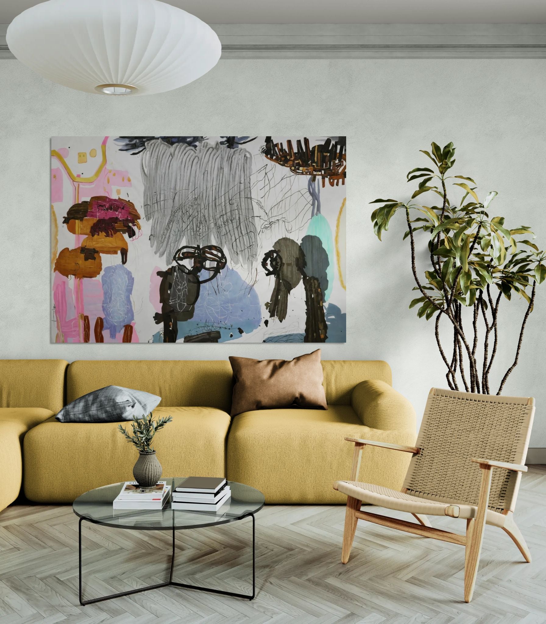 Dieses Werk vereint mehrere zentrale Merkmale von Sommerskos Kunst: das Rohe, das Intuitive und das Fragmentarische. Pinke, graue und schwarze Formen verweben sich zu einer visuellen Kakophonie, in der alles in Bewegung zu sein scheint.