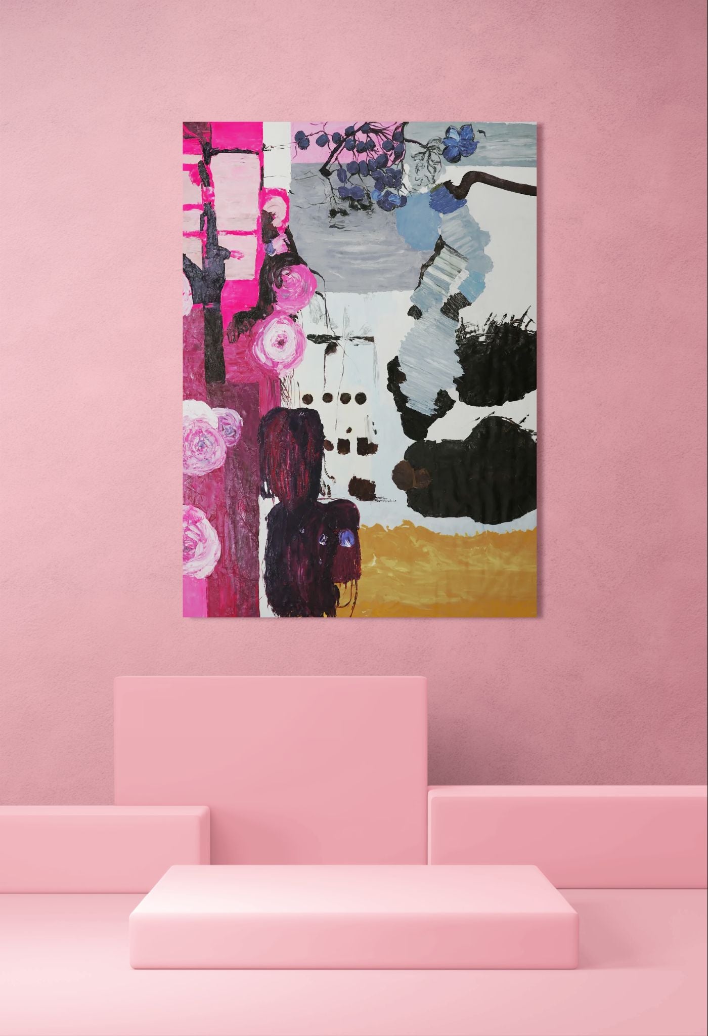 Dette værk føles som en fortsættelse, men har sit eget særpræg. De pink blomster, næsten lysende mod den kølige baggrund, skaber en følelse af romantik, men mørket, som trænger sig ind fra højre, bryder illusionen.