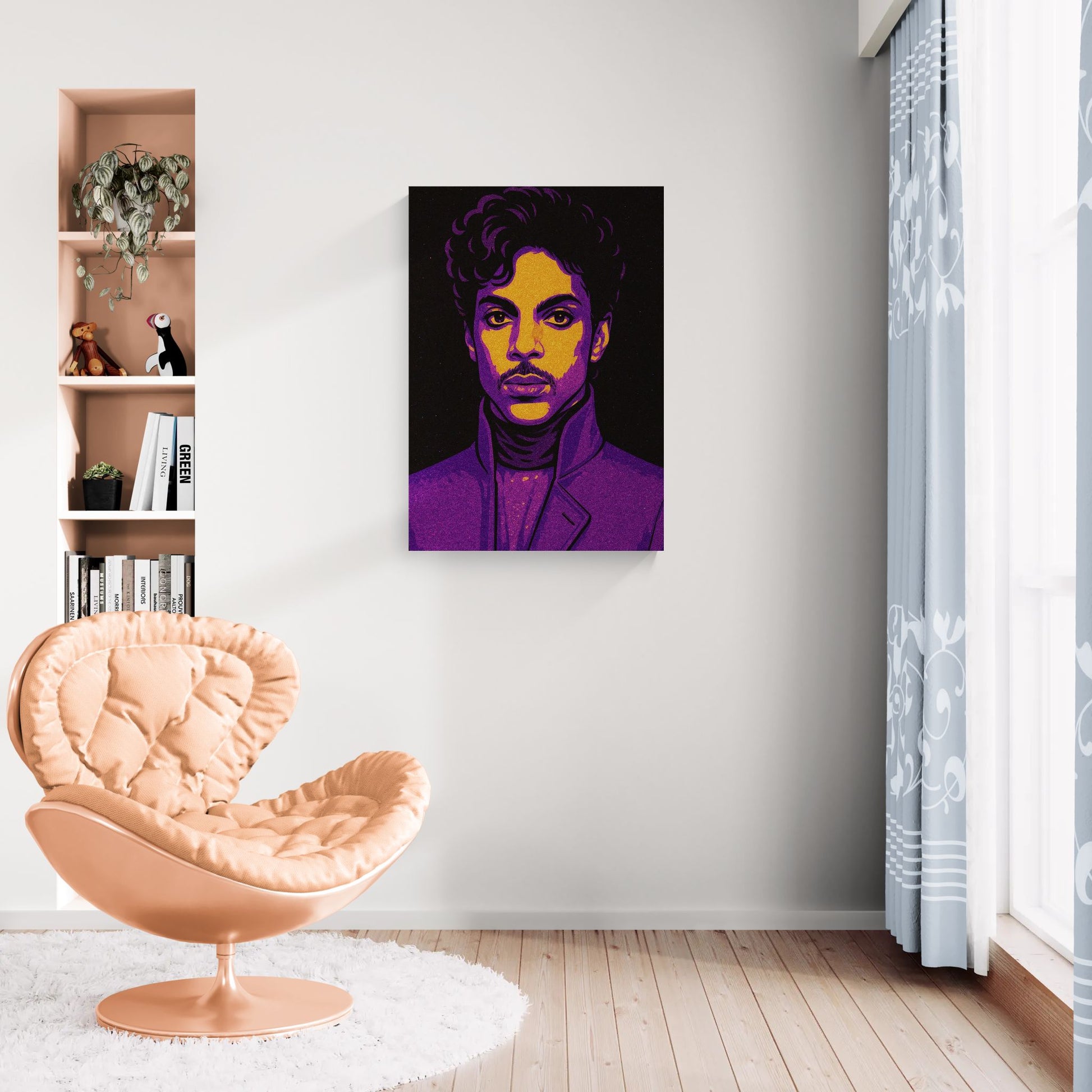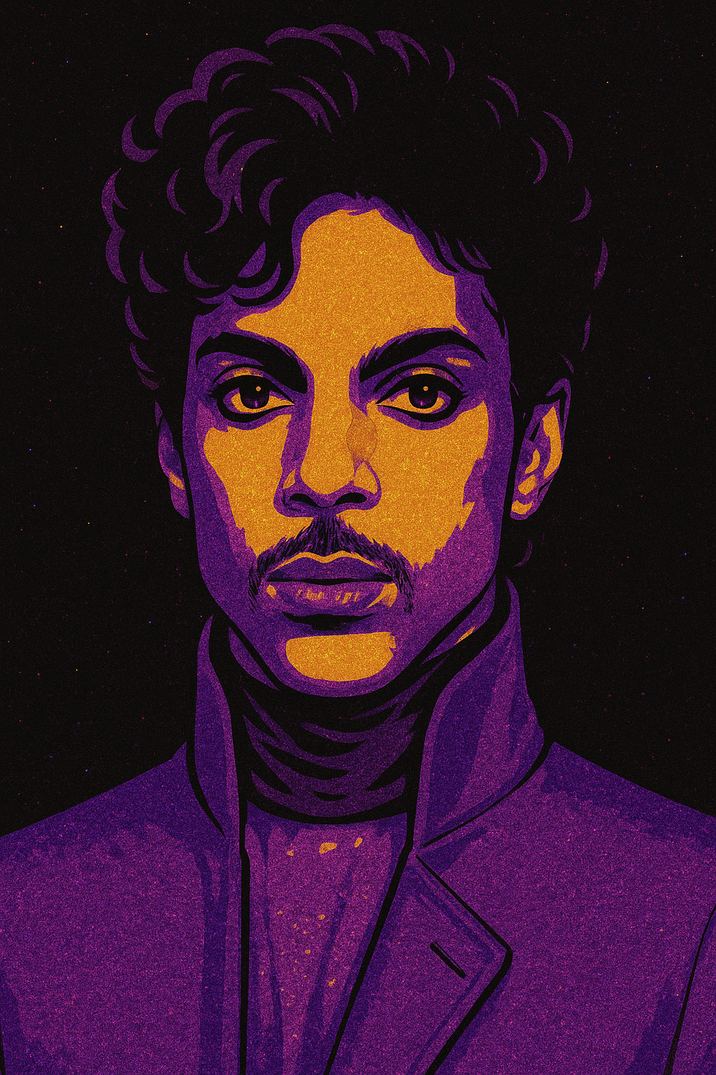 Farverne vibrerer i en hypnotisk rytme af lyd, stil og frihed. Et billede af ren karisma og grænseløs kreativitet.
