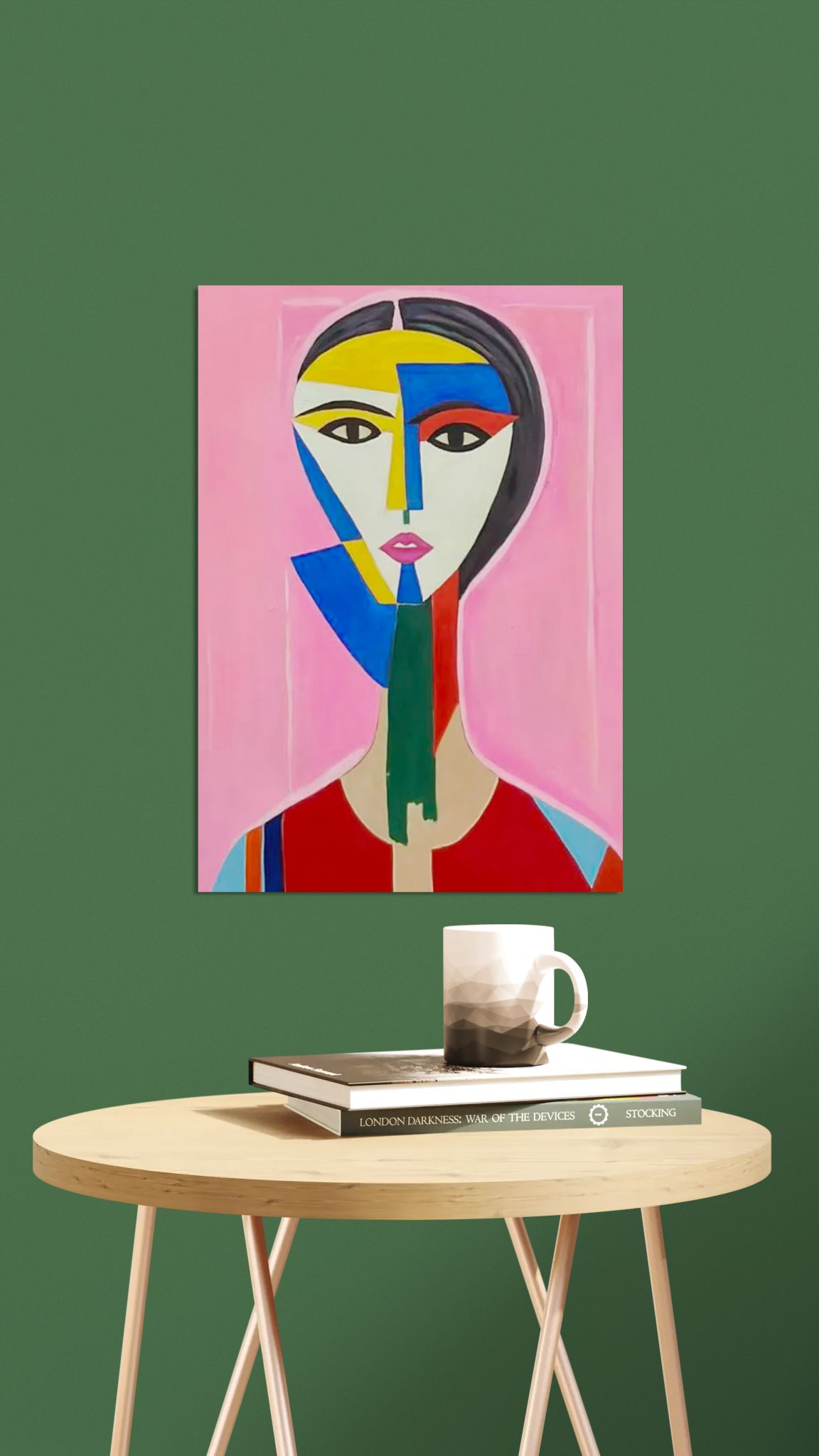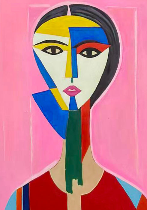 Et søsterværk til det første fragmenterede portræt, men her strammes formen yderligere op. Ansigtets flader er forenklet til farvefelter, og blikket bliver endnu mere intenst i sin stilisering.