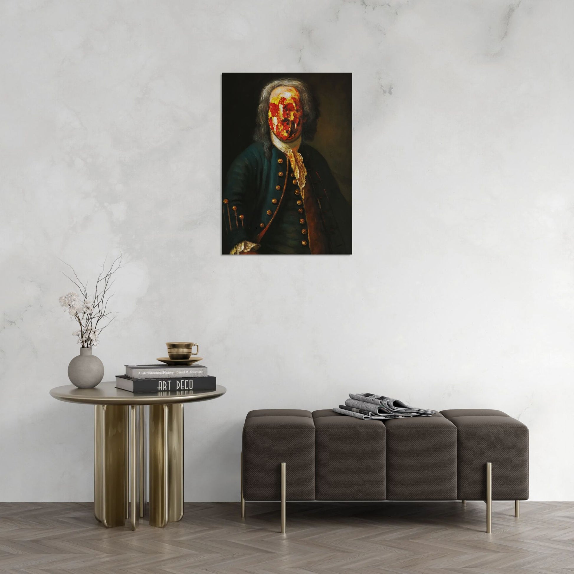 Maleriet leger med kontrasten mellem orden og opløsning, magt og sårbarhed. Farvens brutale energi udfordrer portrættets oprindelige værdighed.